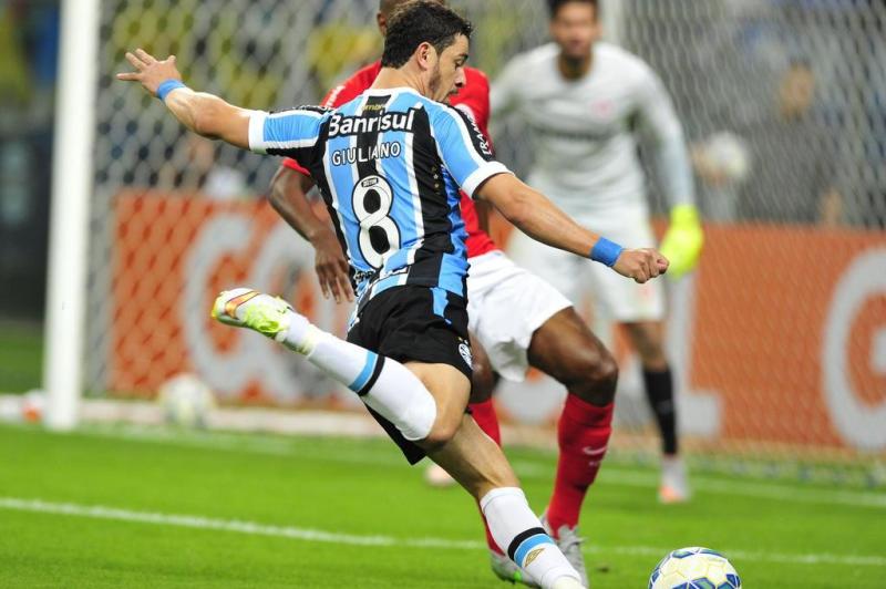 Giuliano, de pé esquerdo, fez um belo gol.